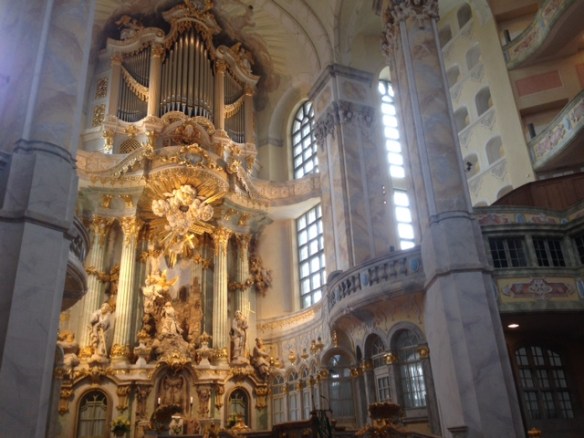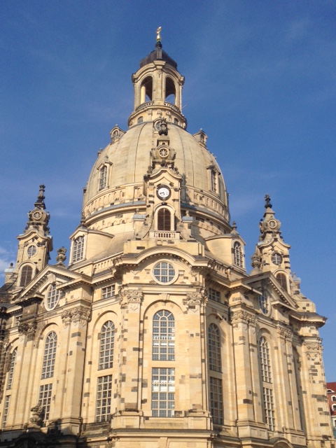 Der Platz blieb nach 1945 als Mahnmal gegen Krieg und Zerstörung unbebaut, er diente als Weideplatz für Schafe und Parkplatz und ab 1982 Demonstranten als Symbol des Widerstands gegen das SED-Regime. Erst nach der Wende wurde die Kirche mit Spenden aus der ganzen Welt wiederaufgebaut und 2005 eingeweiht. Sie ist das Wahrzeichen der Stadt, ein schöner Rundbau mit einer mächtigen Steinkuppel und zieht die Besucher magnetisch an.